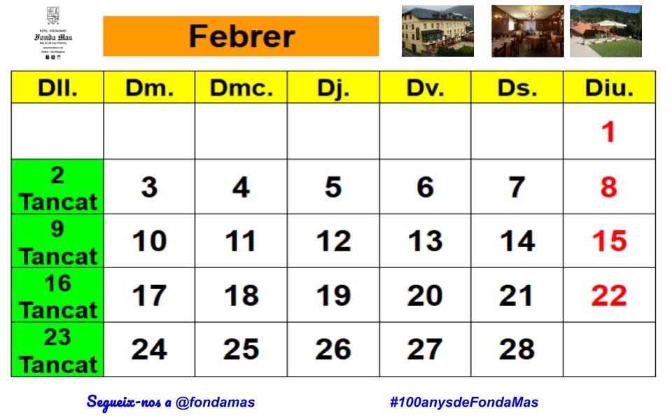 Horari del restaurant és: de dimarts a diumenges de 13h a 15’30h